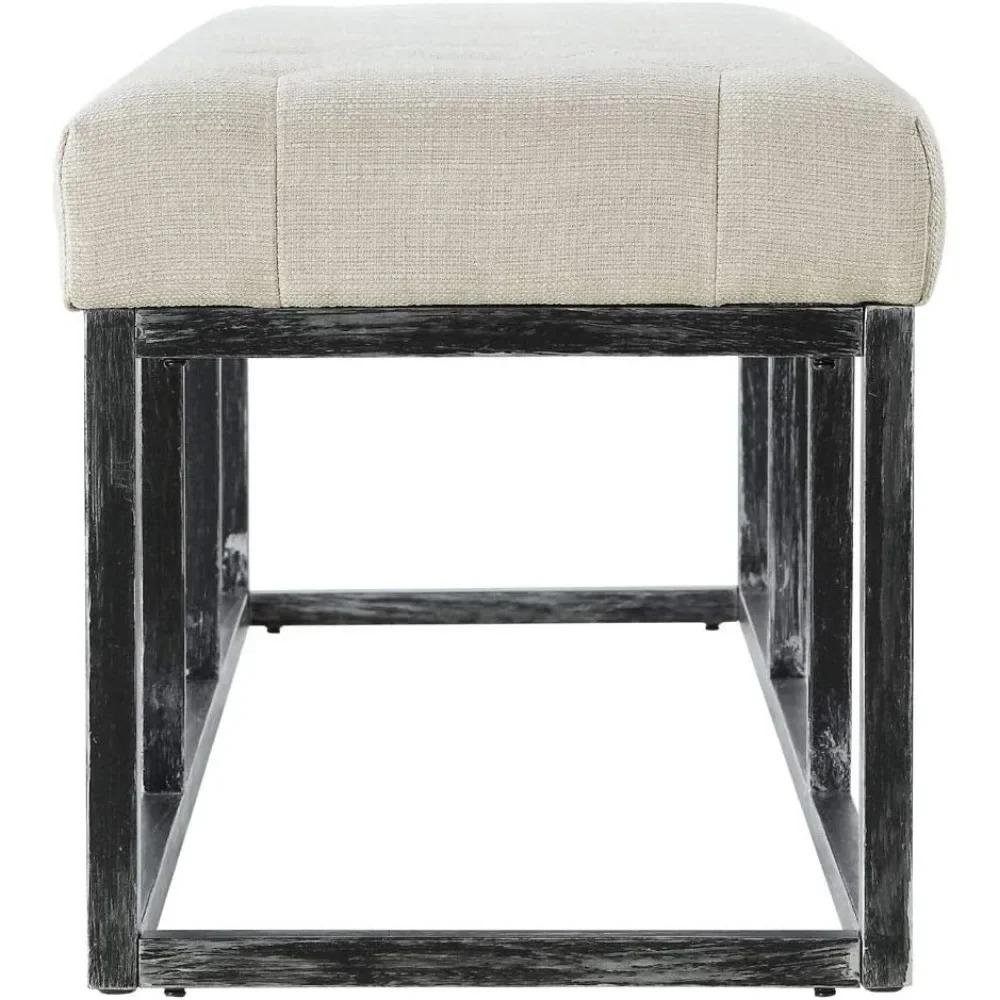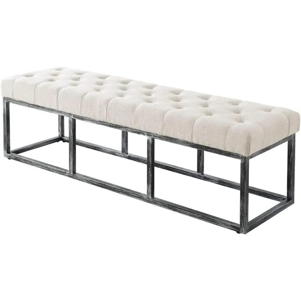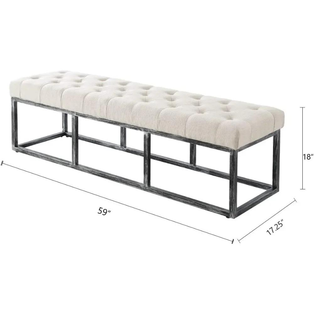 This upholstered tufted long bench seat is the perfect addition to any indoor living space, adding both style and functionality. With a metal frame leg for stability, this bench stool is made out of high quality linen material, making it both durable and comfortable.